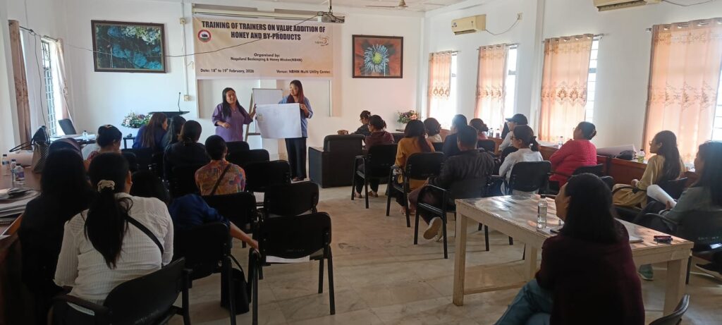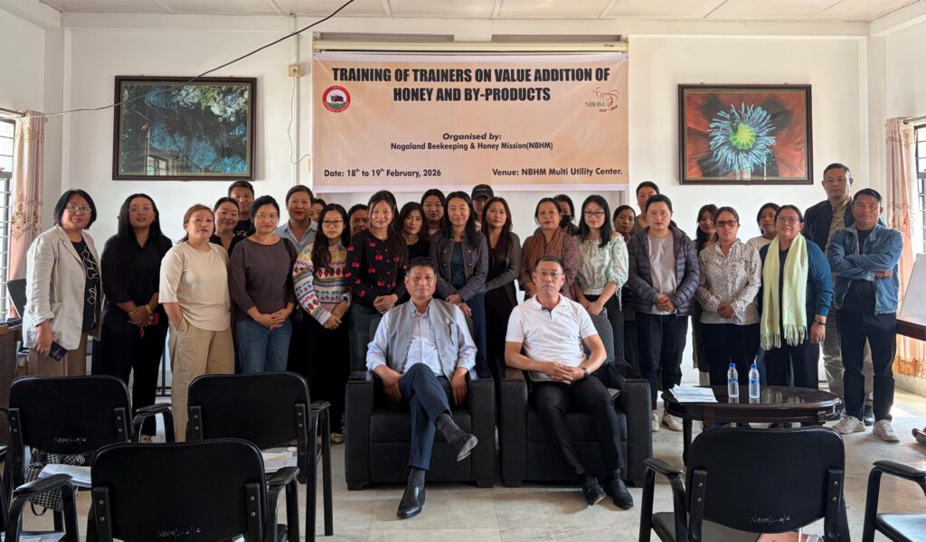 Chümoukedima, February 19, 2026 – The Nagaland Beekeeping and Honey Mission (NBHM) successfully concluded a comprehensive two-day Technical Training for Trainers (ToT) on the “Value Addition of Honey and its By-products” today at the Multi Utility Centre (MUC), 6th Mile.